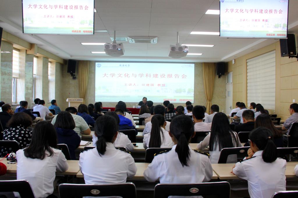 田建国教授以《大学文化与学科建设》为题,从大学文化的定义、丰富内涵、建设重点、思想政治建设和育人环境建设等方面深刻阐述了对大学文化的认识。他认为,大学文化建设重在特色、重在育人,一要在办学教育理念和目标定位中确定大学文化特色,二要在学校的历史发展进程中提炼大学文化特色,三要在个性化发展中追求大学文化特色,四要在地方人文底蕴中发掘大学文化特色,五要在发展创新中创造大学文化特色。关于学科建设,田建国教授认为,一要精准选择学科建设突破口,建设一流学科,打造学科高峰,培养一流人才,提升科技创新能力,致力解决国家经济发展中的重大问题;二要要树立学科建设理念,积极调整学科方向,优化学科资源配置,重视学科交叉渗透,精心培育特色学科,增强学科建设的科学性。