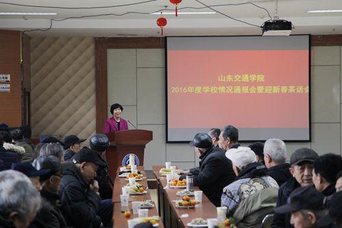 孙秀丽通报了学校2016年度党建工作的基本情况,代表学校党政向所有为学校发展作出贡献的、关心支持学校建设的离退休老领导、老同志及家人致以最亲切的问候、最衷心的感谢和最诚挚的祝福!祝福老同志们身体健康,新春愉快!她希望全体离退休老领导、老同志,保重身体,老有所乐,继续关心支持学校的改革发展,共享更加美好的新生活。