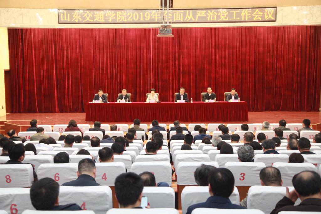 党委书记孙秀丽作学校全面从严治党工作报告。报告中,她总结回顾了学校2018年全面从严治党工作,并部署了2019年全面从严治党重点任务。她指出,学校2019年全面从严治党工作以习近平新时代中国特色社会主义思想为指导,深入贯彻党的十九大和十九届二中、三中全会精神,全面落实习近平总书记视察山东重要讲话、重要指示批示精神,不忘初心、牢记使命,增强“四个意识”、坚定“四个自信”、做到“两个维护”,坚持稳中求进工作总基调,坚持高质量发展,以党的政治建设为统领,全面加强党的建设,切实增强学校各级党组织的创造力、凝聚力、战斗力,蹄疾步稳抓好全面从严治党新的任务,为全面打赢“1245”攻坚战提供坚强保障。她就贯彻落实全面从严治党提出以下要求:一是持之以恒学习贯彻习近平新时代中国特色社会主义思想,在学懂弄通做实上下功夫;二是把党的政治建设摆在首要位置,在坚持和加强党的领导上下功夫;三是夯实党的组织体系根基,在增强支部政治功能和组织力上下功夫;四是抓好干部队伍建设这个关键,在发挥表率作用上下功夫;五是弛而不息加强作风建设,在整治形式主义、官僚主义上下功夫;六是强化监督执纪问责,在日常监督、重点监督上下功夫。孙秀丽强调,全校师生员工要紧紧团结在以习近平同志为核心的党中央周围,按照省委“担当作为,狠抓落实”的部署和要求,勇于担当,积极作为,以更加坚定的信心和更加扎实的工作,持续推动以全面从严治党引领和保障全面从严治校向纵深发展,为建设高水平应用型大学做出新的更大贡献!