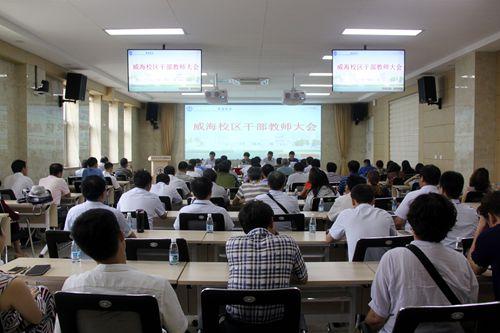 7月21日,学校在威海校区多功能厅召开威海校区干部教师大会。学校党委书记孙秀丽,党委副书记、院长陈松岩,副院长、威海校区党委书记、管委会主任姜华平出席会议,陈松岩主持会议。