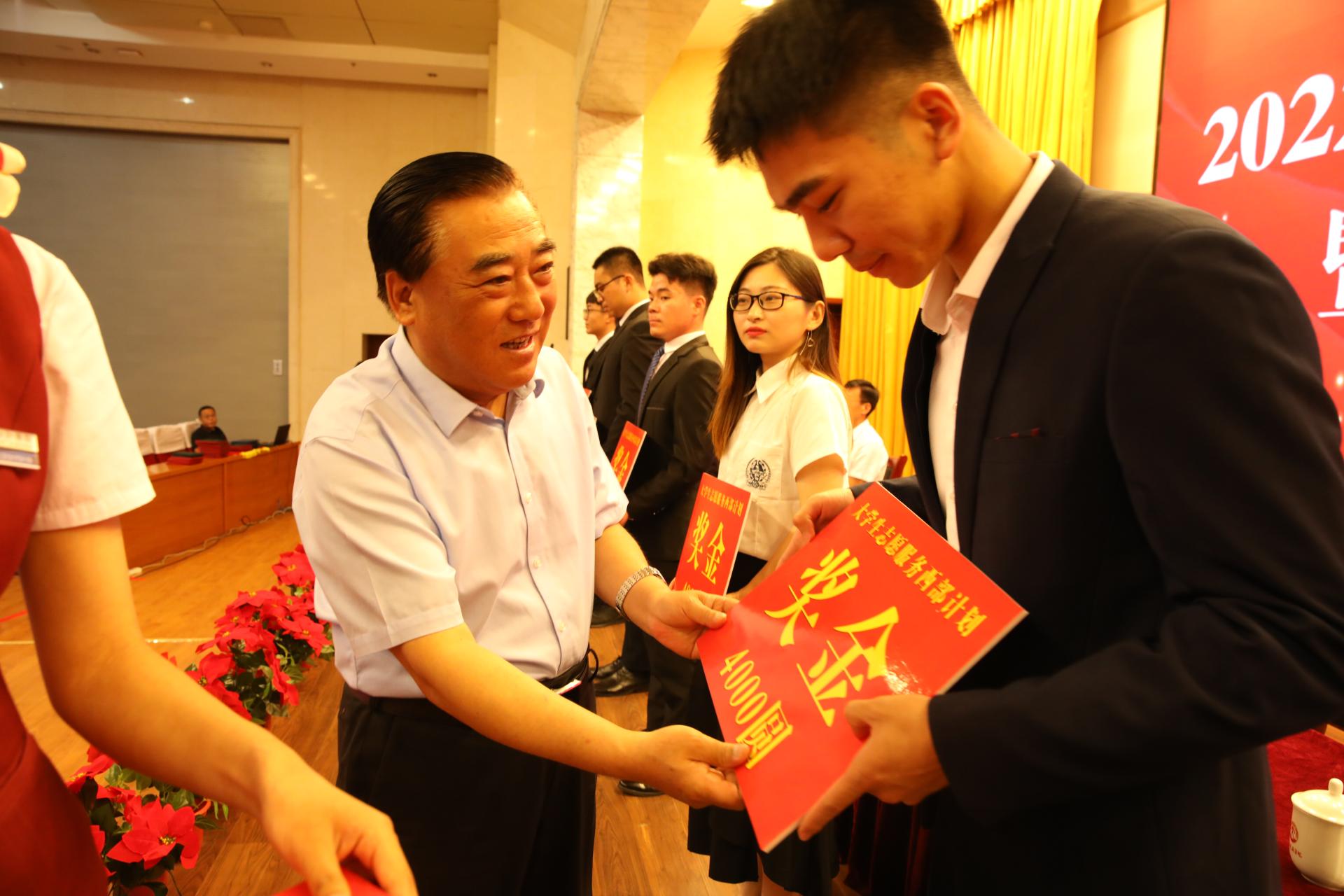 党委书记王焕斌为西部计划志愿者颁发奖金。