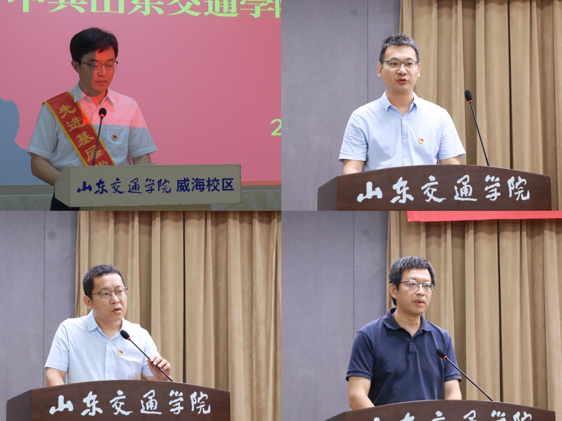 先进基层党组织获奖代表隋翀、优秀共产党员获奖代表黄万友、思想政治工作先进个人获奖代表屈会涛、统战工作先进集体代表张广渊依次作交流发言。