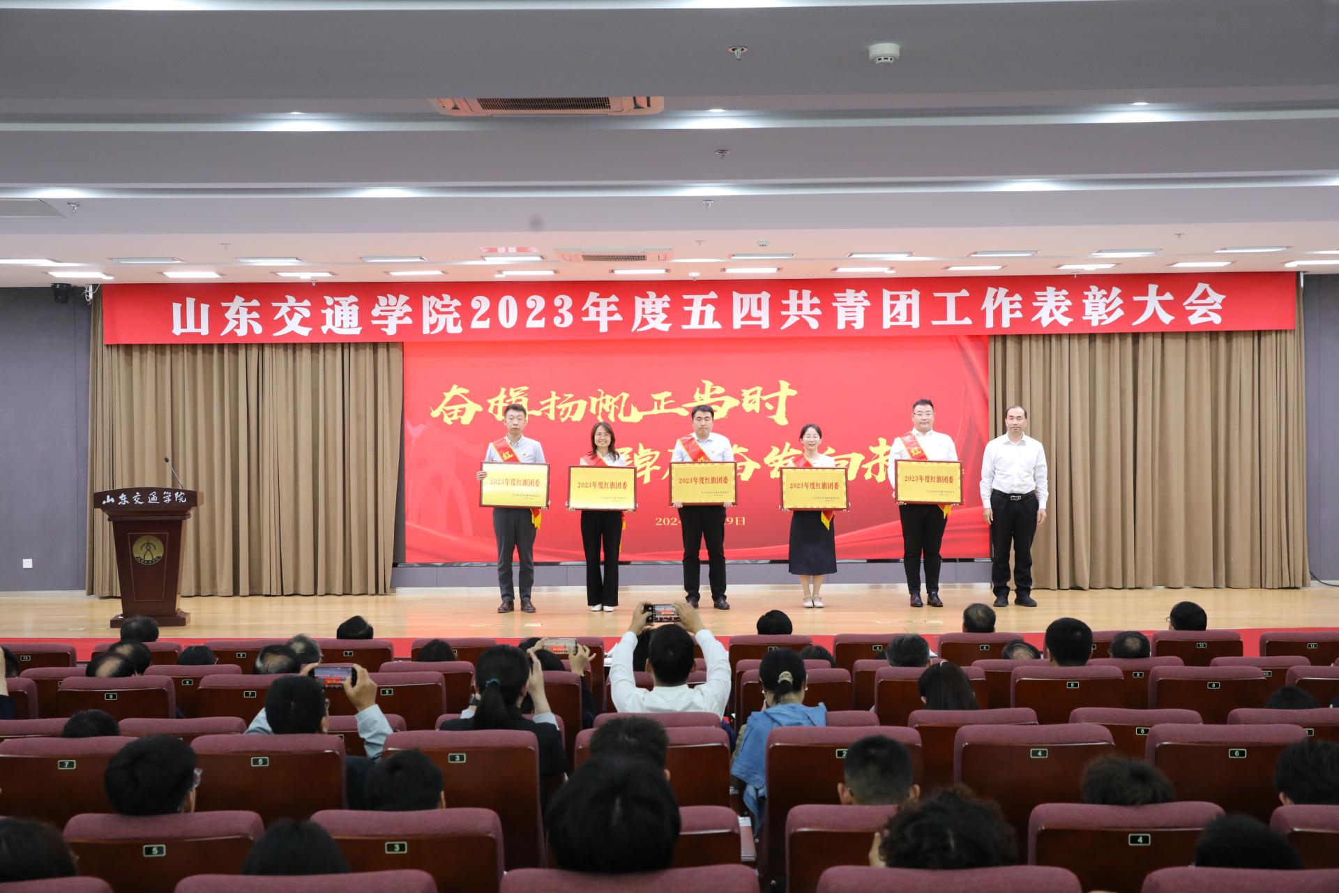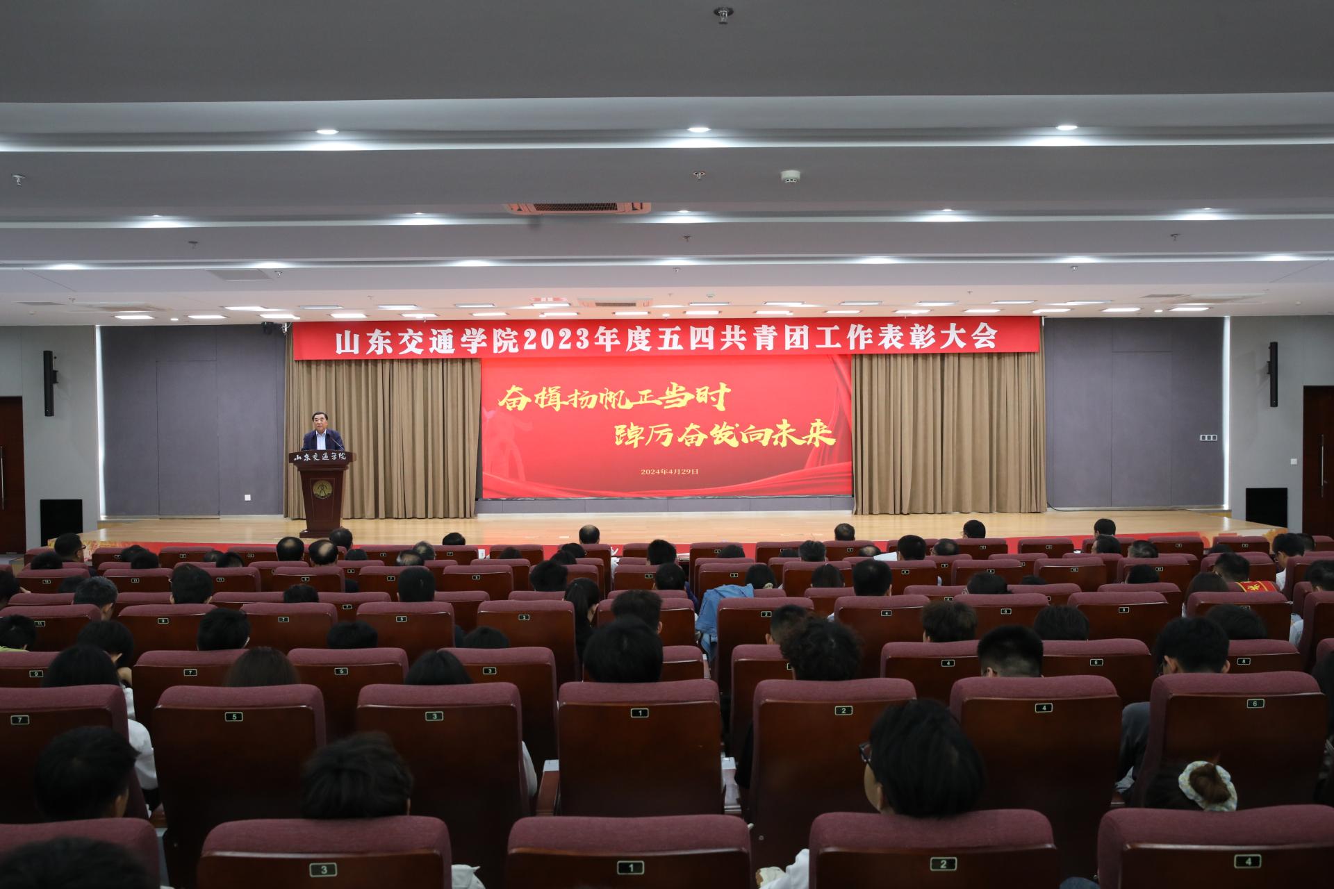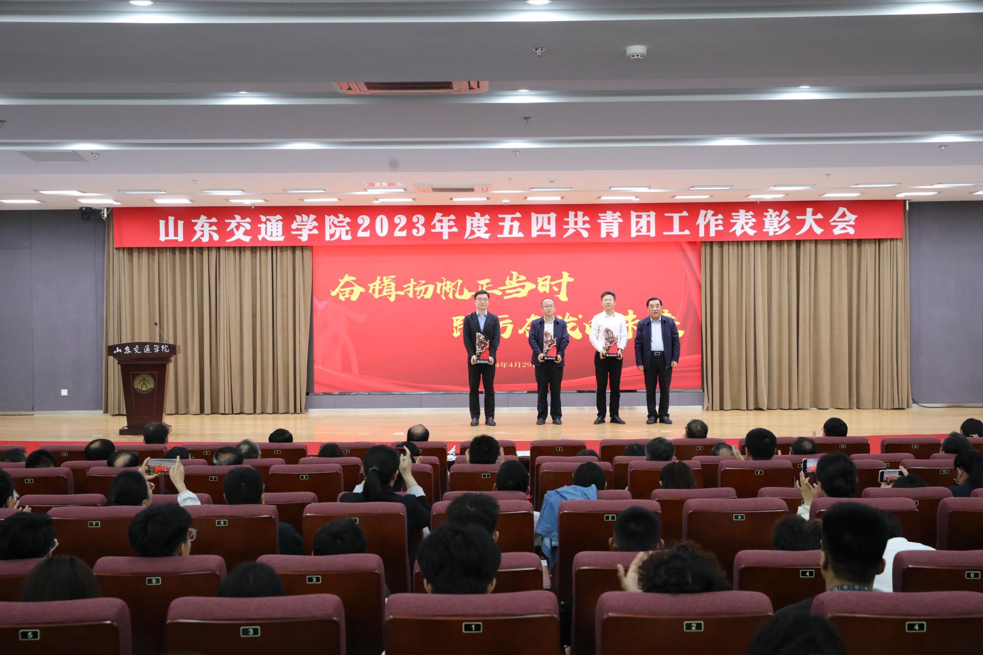 4月29日下午,学校在长清校区明德楼101报告厅举行2023年度五四共青团工作表彰大会。学校党委领导王焕斌、孔伟金、李贞涛、姜华平、王保群、周颜玲出席活动。