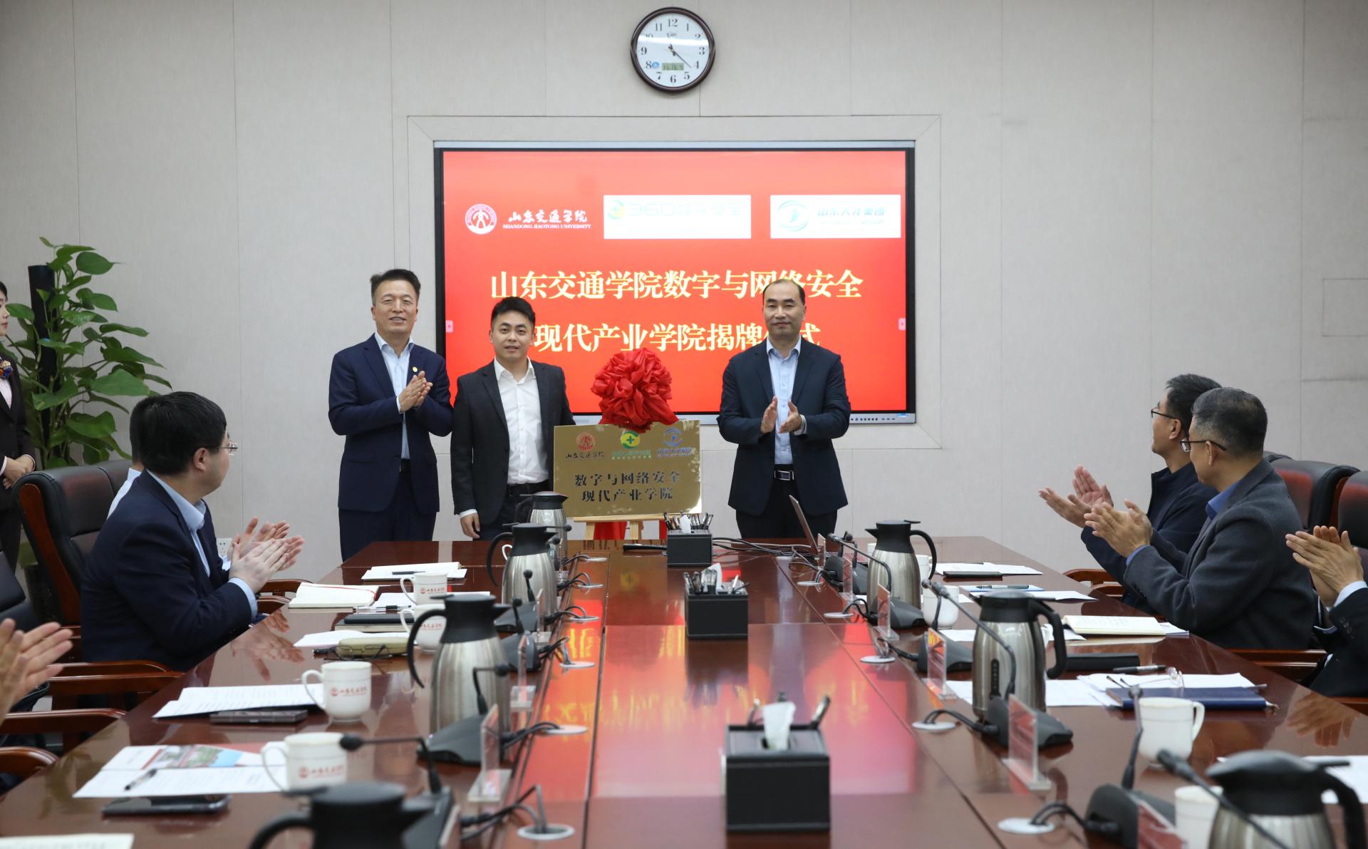仪式上,孔伟金、卜思南和杨光军共同为数字与网络安全现代产业学院揭牌。三六零数字安全科技集团副总裁、360青岛公司总经理王明玉,山东人才发展集团教育咨询有限公司执行董事、泰山高级经理研修院常务副院长徐昆鹏,姜华平共同签署《LT.COM乐投数字与网络安全现代产业学院共建协议》。
