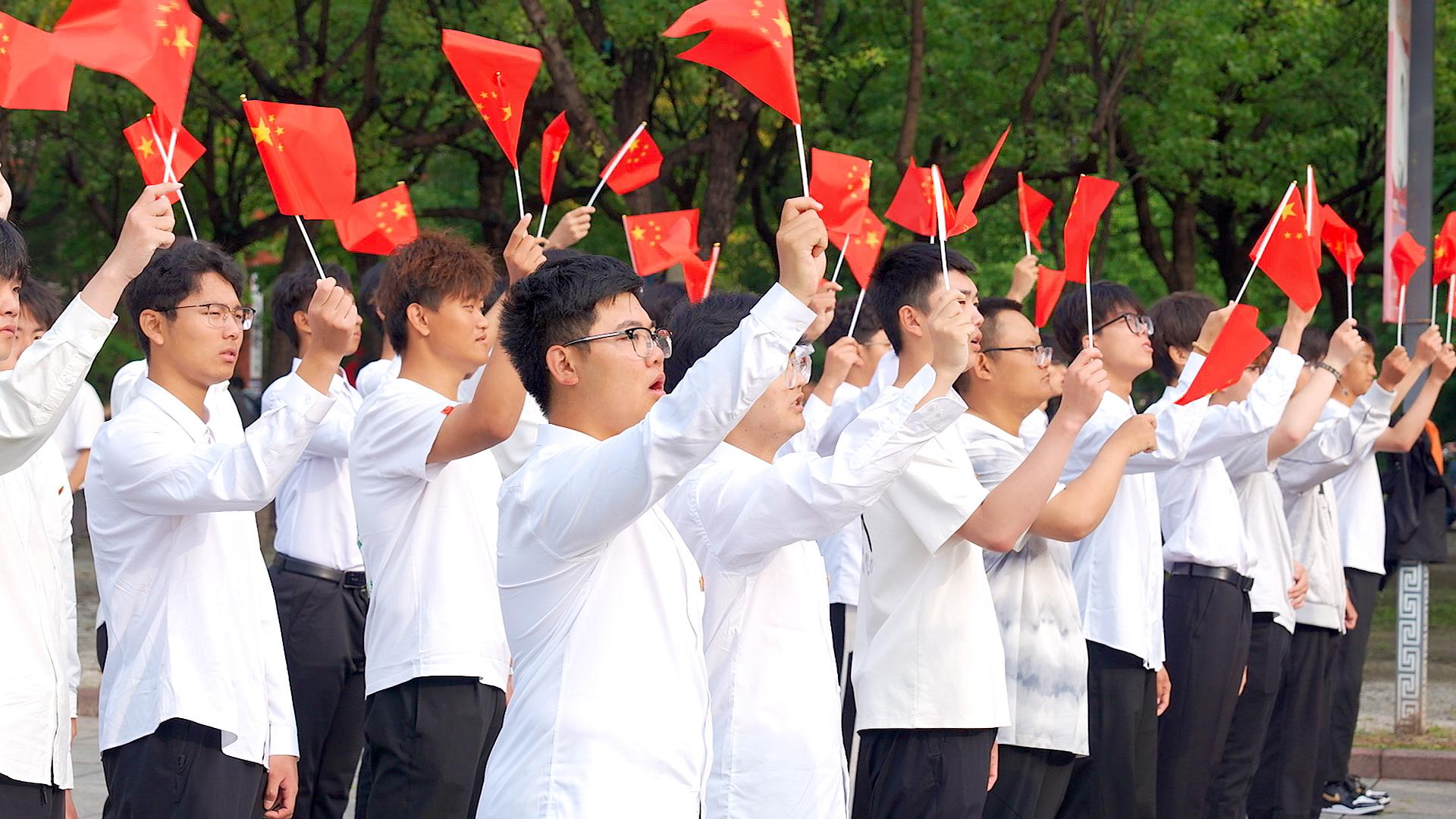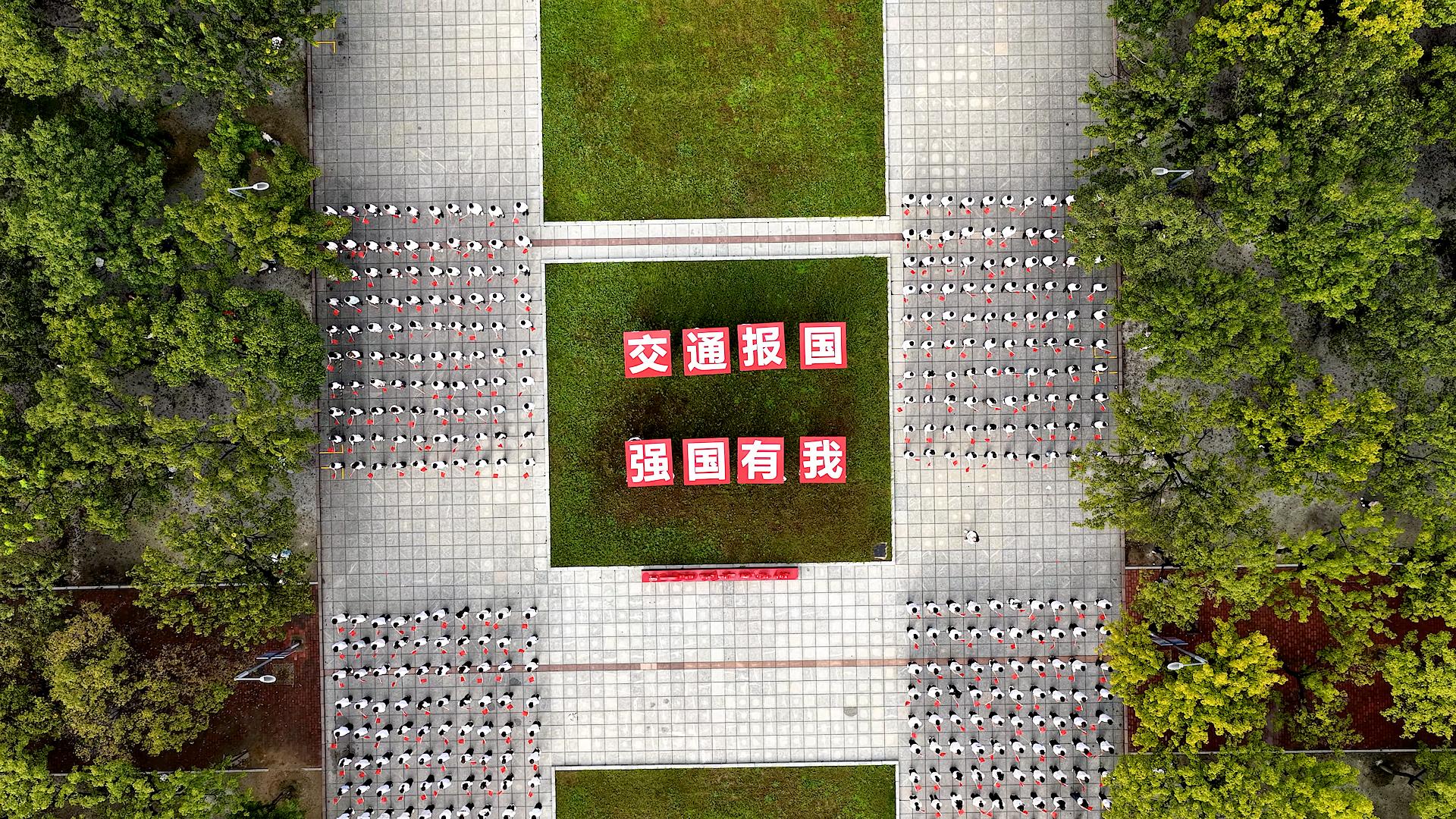 “交通报国,强国有我!”全体学生以饱满的热情、洪亮的声音齐声喊出铮铮誓言,展现出青年一代立志投身交通事业、助力强国建设的壮志豪情。与此同时,学校军魂连队员有序托举“交通报国,强国有我”八个醒目大字缓缓走入广场,将活动氛围推向高潮。随后,悠扬动人的《我和我的祖国》旋律在广场上响起,全体师生挥舞手中的小红旗,跟随旋律齐声歌唱,表达对祖国母亲最深沉的热爱与最美好的祝福。