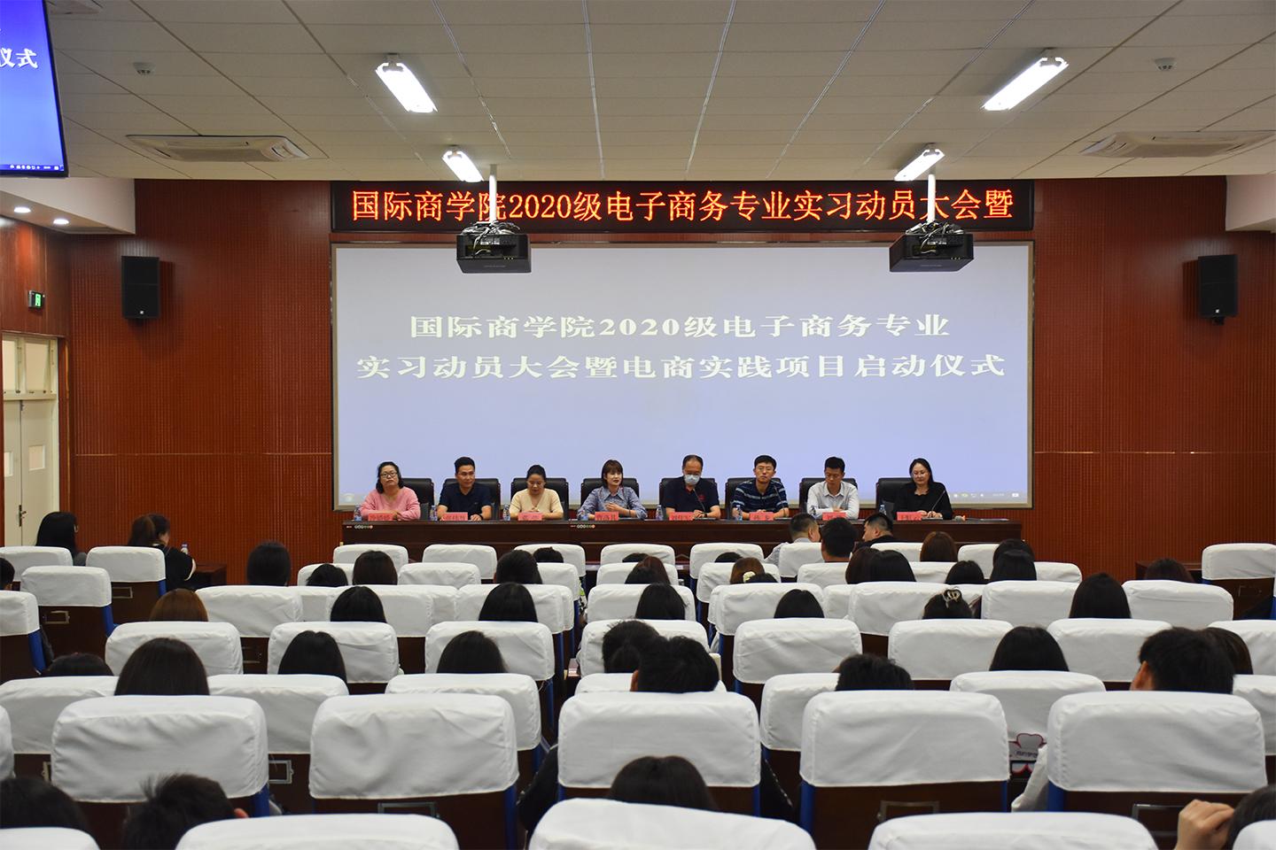 近日,国际商学院在威海校区2号教学楼C101会议室举办2020级电子商务专业实习动员大会暨电商实践项目启动仪式。山东网商集团高校事业部运营中心总经理曹洛其,国际商学院党委书记刘佳军、党委副书记刘洋、副院长孙龙参加仪式。仪式由学院电子商务系主任王虹云主持。
