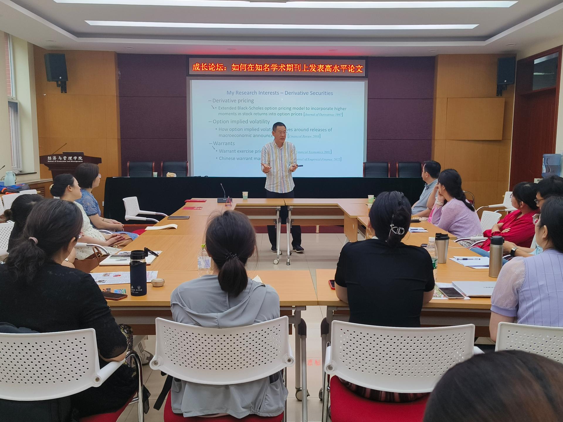 会上,美国迈阿密大学终身副教授宿铁博士作《如何在知名学术期刊上发表高水平论文》讲座。他介绍了自己的研究领域和工作内容,围绕在期权定价和套期保值、资产估值、财富管理等领域取得高水平成果等方面,阐述了知名学术期刊涵盖的要素、高水平论文的评价标准以及论文发表过程中应该注意的若干问题,并从作者和评审人视角分享了发表论文的体会。最后,他与参会师生进行充分交流,并表示,将发挥自身优势,积极推进我校与国外高校的合作,协助开展专题讲座、经管学科建设、高层次人才引进、科研团队建设等工作,为学生出国留学、教师出国访学进修提供资源和平台。