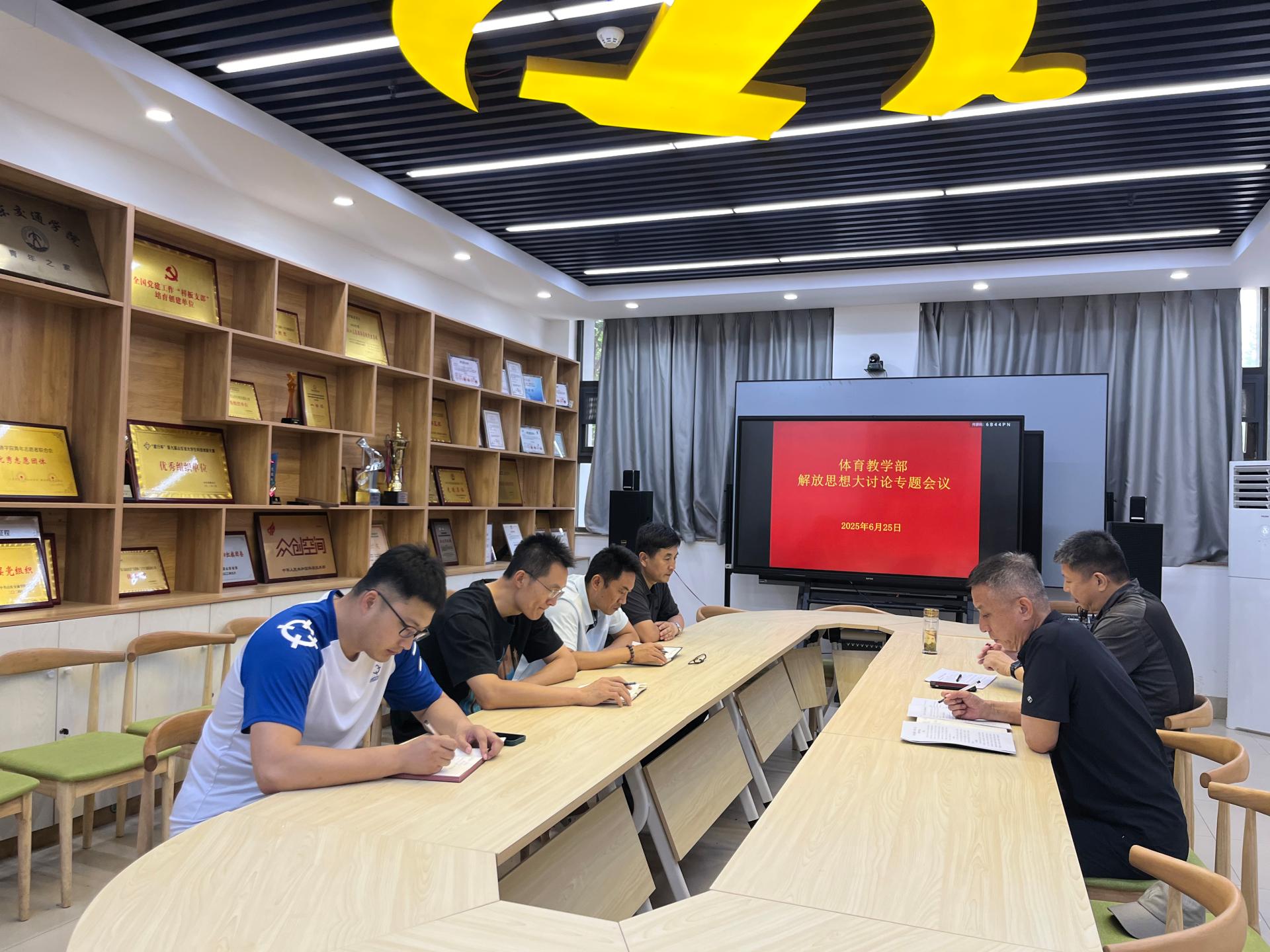 6月25日,体育教学部在文体馆A118会议室召开解放思想大讨论专题会议。体育教学部主任陈晋主持会议。