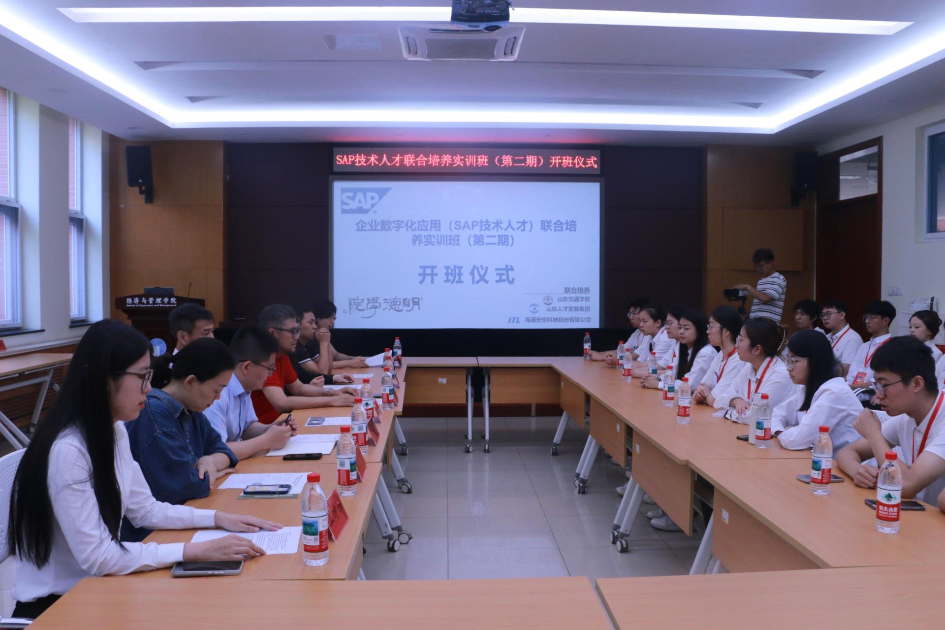 据悉,企业数字化应用(SAP技术人才)联合培养实训班(第二期)由我校与山东人才发展集团、北方智企(山东)科技创新有限公司共同举办,共有来自英国诺丁汉大学、中北大学、山东建筑大学、齐鲁工业大学、山东管理学院等高校的37名学员参加。