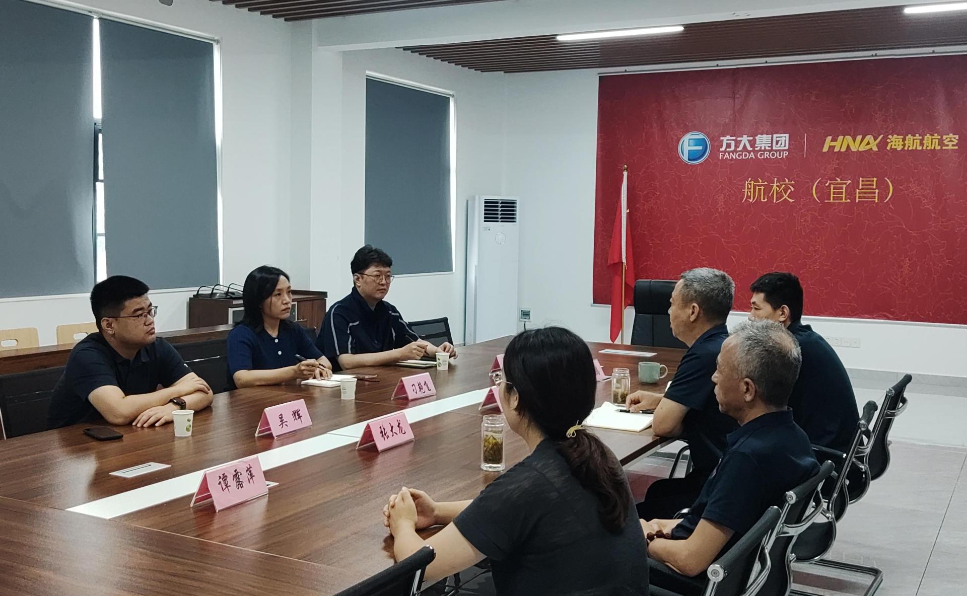 近日,航空学院党委书记刁艳飞一行赴海南航空学校有限责任公司调研交流。海南航空学校有限责任公司董事长戴成怀、总裁张大龙参加座谈。