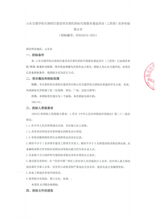 LT.COM乐投长清校区建设项目委托招标遴选项目(工程类)竞争性磋商公告