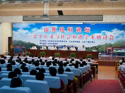2012年9月22日,山东社科论坛——公平正义与社会和谐学术研讨会在我校顺利举办。此次社科论坛由山东省社会科学界联合会、大众报业集团和山东广播电视台主办,我校承办,山东省社会学学会、山东省哲学学会协办。我校科研处、社科部、文法学院和管理学院共同承担了论坛的论文征收、筛选、专家邀请、大会组织等相关工作。研讨会由我校副院长孙云早主持。
