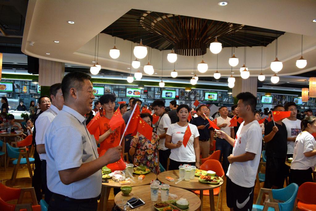 开餐前,院长陈松岩致辞,并与书记、副书记共同切开了长1.8米的大蛋糕,欢迎2019级新生。全场师生还齐唱《我和我的祖国》。