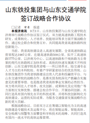 当前,我省高铁建设进入高速发展期,全省高速铁路运营里程达1987公里,在建高速铁路509公里,拟开工高速铁路1775公里,以济南为中心、以高速铁路和干线铁路为主骨架的现代化铁路网正加快形成。高铁的快速发展离不开科技创新。LT.COM乐投是我省唯一一所以培养水、陆交通专业人才为主的本科院校,有着产学研紧密结合的优良传统。山东铁投集团作为我省铁路建设出资人代表和投融资平台,与LT.COM乐投的战略合作,是落实国务院深化产教融合实施意见的重要举措,也是推进我省高铁事业发展的必然担当。双方将共同在人才培养、攻关创新、成果转化及应用推广等方面相互发挥优势,搭建企校合作平台,开展协同创新,共同打造具有国内领先水平的科技成果,并将科技创新转化为高铁建设、运营的实际成果,为服务交通强省发展战略作出新的更大贡献。