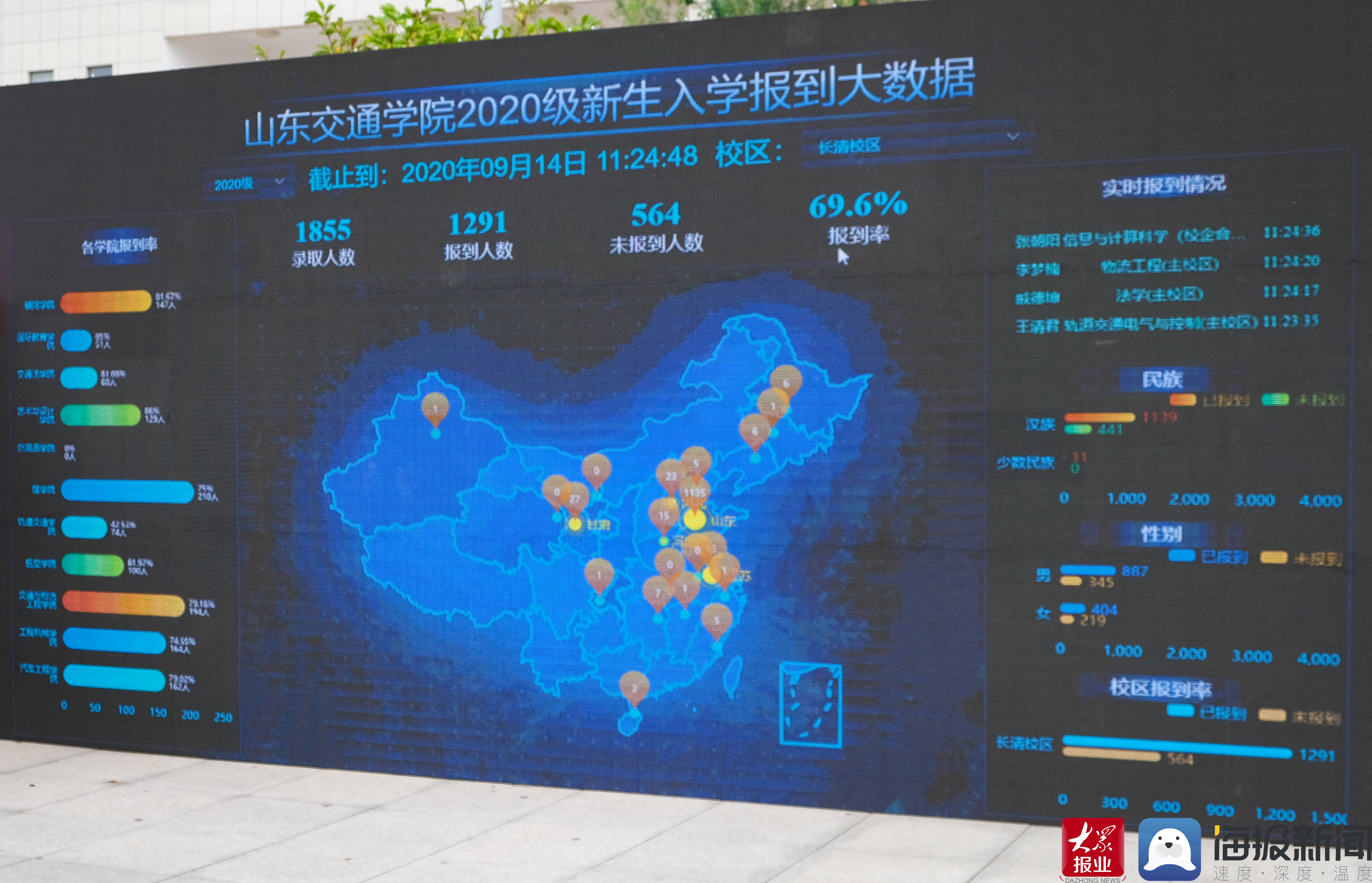 此外,交通学院还搭建了新生报到数据平台,学生可以全程看到完整报到流程及校园、住宿环境,学校老师可了解学生的实时报到信息。