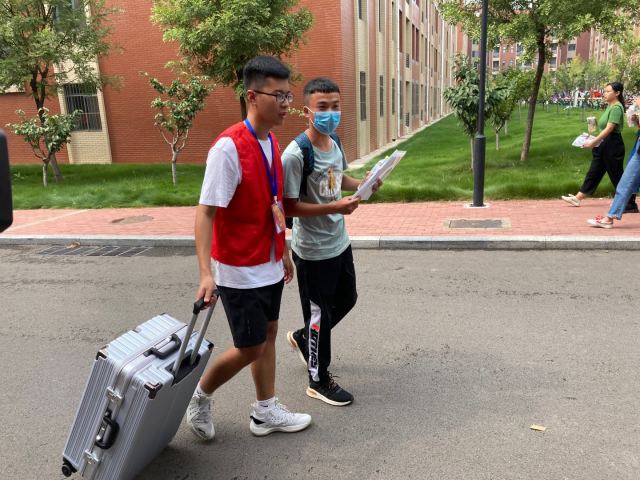 据介绍,由于今年特殊的防控要求,新生家长们不能陪同进校,新生需自己进校报到。各班辅导员通过易班系统了解新生到校时间、接站地点、协助需求,并一一与新生核实,从而精准了解新生入学信息。从新生到达学校东门的一刻,立即会有“被预约”的教职工与志愿者陪伴其走完“最后一公里”,学校也专门设置了摆渡车帮助学生运送行李。