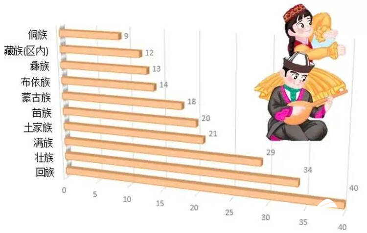2021级萌新们来自31个不同的民族,其中少数民族生源数前十位为:回族、壮族、满族、土家族、苗族、蒙古族、布依族、彝族、藏族、侗族。