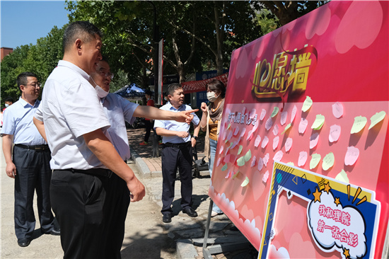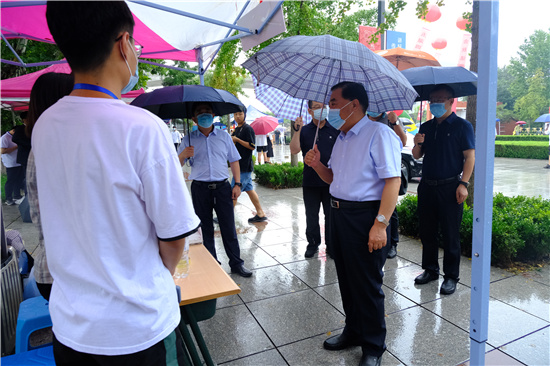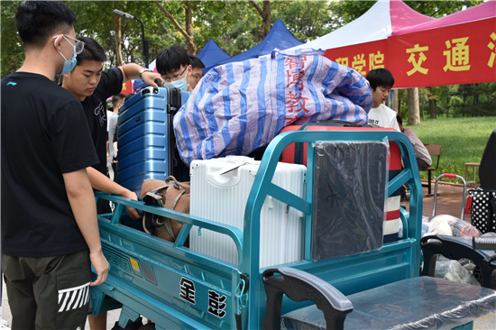 “新生有很多都是第一次离家,父母由于疫情防控也无法进校,能让家长放心,让学生安心,我们的工作就有意义。”辅导员擦着汗说道。