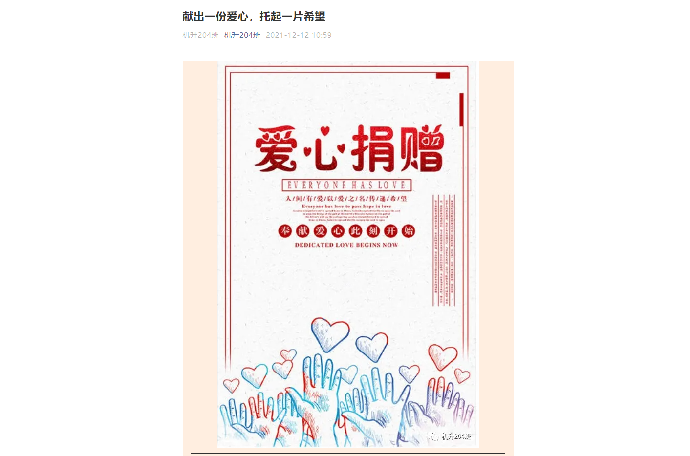 “在班主任陶远城的指挥安排和同学们的配合帮助下,我们第一时间采取了急救行动,把握好了关键的“黄金八分钟”。以及后期机升204班全体同学为李阳公开募捐,大家不畏困难,不惧严寒,为李阳同学的付出,为挽救同学的举措,让我看到了学院的负责与温暖,看到了同学们的团结与爱心。我仅仅只是在关键的时候做出了自己应该做的小事,当时心里想到的只有如何尽自己最大的努力去挽救他,我更觉得是自己应该做的事情,我相信全班同学也是这样想的。”张超表示。