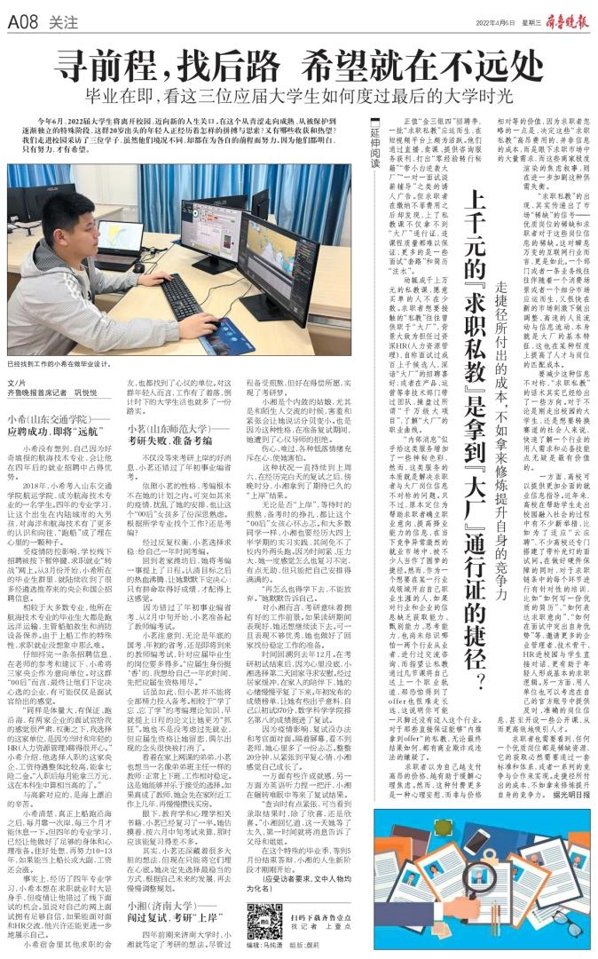 小希宿舍里其他求职的舍友,也都找到了心仪的单位。对这群年轻人而言,工作有了着落,倒计时下的大学生活也就多了一份踏实。