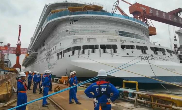6月6日,我国首艘国产大型邮轮“爱达·魔都”号在中国船舶集团有限公司旗下上海外高桥造船有限公司2号船坞顺利出坞,全面开启码头系泊试验、出海试航和命名交付的决战周期。