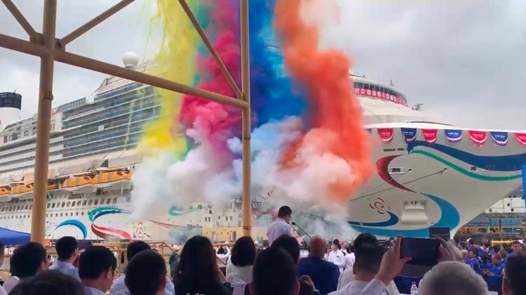 据了解,2019年,我国首艘国产大型邮轮在上海外高桥造船正式开建。2023年5月19日,上海市文旅局和中船邮轮将其正式定名“爱达·魔都”号。邮轮总长323.6米,型宽37.2米,共有2826间舱室,总面积约3.46万平方米。其中,乘客舱室2125间,满载时可搭载5246名乘客。高达16层的上层生活区,拥有剧院、特色餐馆、购物广场、艺术走廊和水上乐园等丰富的休闲设施。