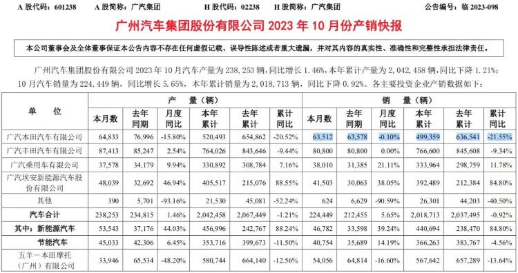 据广汽集团每月披露的产销统计数据,今年1-10月份,广汽本田的销量为49.94万辆,与2022年同期的63.65万辆相比,下跌了21.55%。其战略车型雅阁,也被迫做出以价换量的选择,但仍旧没有回到去年同期的水平。