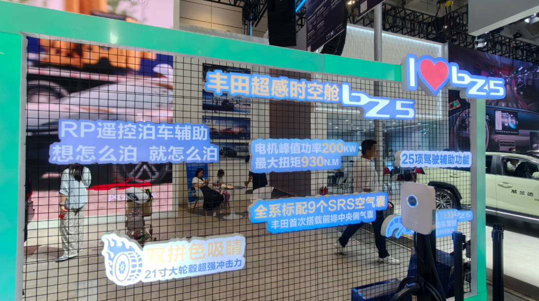 行走在本届车展场馆,技术展板取代了部分促销招牌,成为吸引目光的新焦点。智己展台悬挂的“智己天幕为盾,瞬感天幕防晒天花板”宣传语引来了不少问询,长城展台关于“Hi4混动智能四驱技术体系”的介绍也吸引众多消费者围观。
