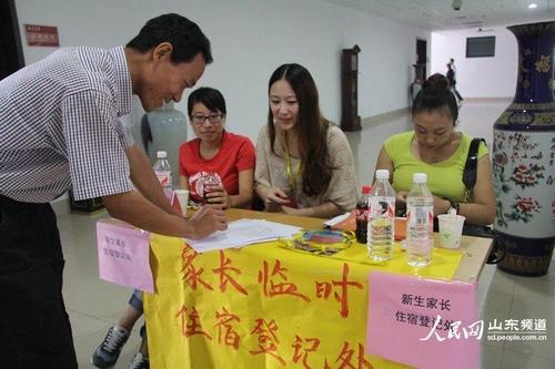 家长陪着学生查看新生报到流程。(摄影 张岩)