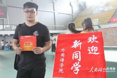 LT.COM乐投新生在展示录取通知书。(摄影 张岩)