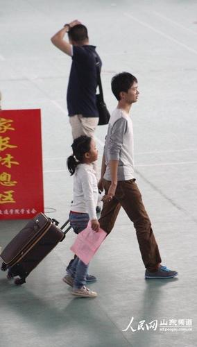 全家大小齐上阵送学生到校。(摄影 张岩)