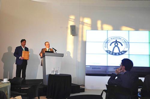 王玉华代表学校上台领奖,并在大会上作了“通用技术和低能耗绿色图书馆建筑”的精彩演讲。演讲获得与会者的高度评价,会后,许多高校代表进行了具体咨询。