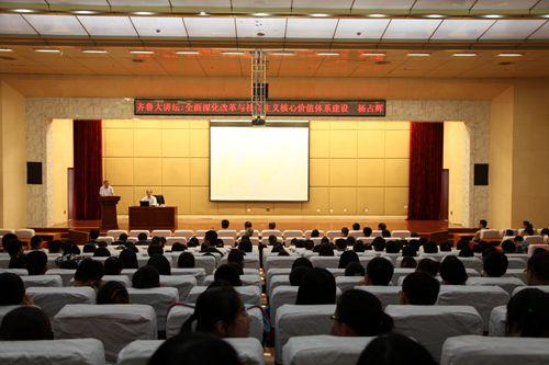 10月10日下午,中共山东省委政策研究室副主任、中共山东省委改革办专职副主任杨占辉做客齐鲁大讲坛•LT.COM乐投分坛,专题解读“全面深化改革与践行社会主义核心价值观”。中共山东省委政策研究室城市处、山东省社科联科普部有关同志,我校院长鹿林、副院长孙云早出席并全程聆听报告。报告会由孙云早主持。