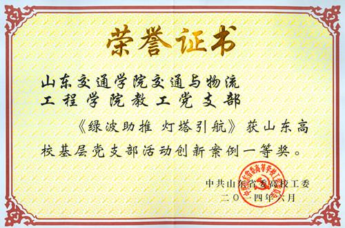 近日,省委高校工委对全省高校基层党支部活动创新案例进行了表彰,我校交通与物流工程学院教工党支部申报的“绿波助推,灯塔引航”荣获一等奖。省委高校工委组织的全省高校基层党支部活动创新案例征集活动,旨在进一步增强党支部活动的吸引力和感染力,提升党员教育管理工作水平,使高校基层党支部的活动体现时代性、把握规律性、富于创造性。经专家评审,全省高校共评出一等奖18例,二等奖32例,三等奖53例。