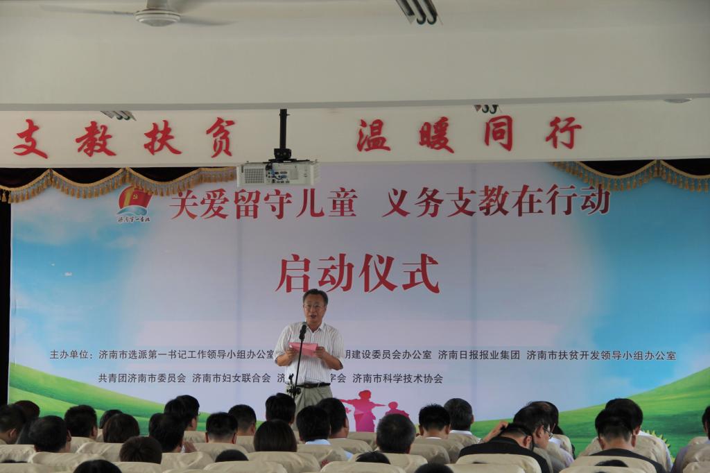 7月18日,济南市“关爱留守儿童,义务支教在行动”教育扶贫公益活动总启动仪式在商河县殷巷中学举行。我校党委副书记唐勇、济南市扶贫开发领导小组办公室副主任周培成、商河县委副书记张琛出席了本次启动仪式,我校党委宣传部、工程机械学院以及济南市、商河县、殷巷镇等有关部门负责人参加了本次启动仪式。我校泉城义工服务团作为驻济高校支教团队代表参加了本次活动。