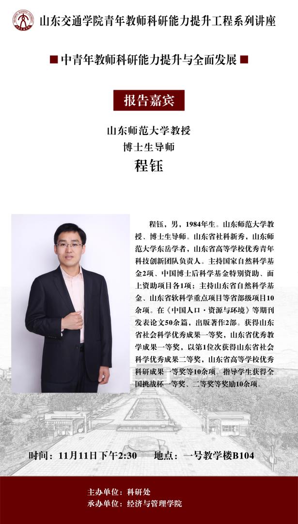 程钰,男,1984年生。山东师范大学教授、博士生导师。山东省社科新秀,山东师范大学东岳学者,山东省高等学校优秀青年科技创新团队负责人。主持国家自然科学基金2项、中国博士后科学基金特别资助、面上资助项目各1项;主持山东省自然科学基金、山东省软科学重点项目等省部级项目10余项。在《中国人口·资源与环境》等期刊发表论文50余篇,出版著作2部。获得山东省社会科学优秀成果一等奖,山东省优秀教学成果一等奖,以第1位次获得山东省社会科学优秀成果二等奖,山东省高等学校优秀科研成果一等奖等10余项。指导学生获得全国挑战杯一等奖、二等奖等奖励10余项。