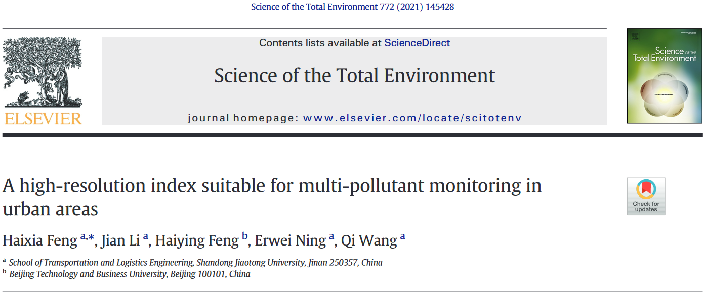 该成果是交通与物流工程学院冯海霞副教授作为第一作者发表在2021年1月份《Science of the Total Environment》期刊(DOI:10.1016/j.scitotenv.2021.145428),该期刊在中科院科院SCI期刊分区被分为环境科学类一区的top期刊,2021年影响因子IF/JCR分区为7.963,h-index为205,CS为10.50,该期刊是聚焦于环境类研究的国际期刊。