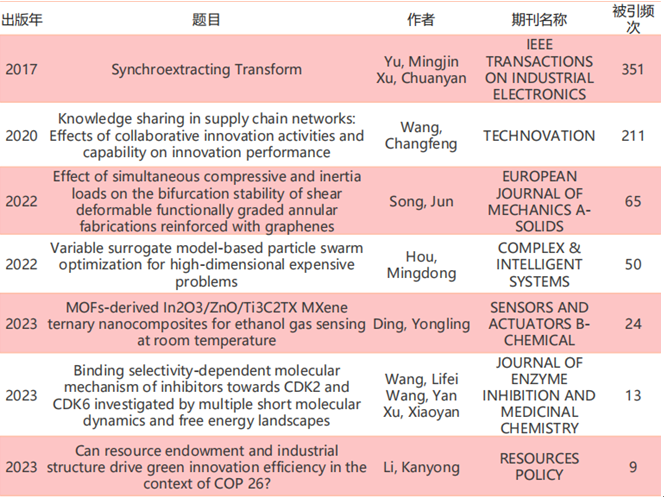 我校本期共7篇论文入选高被引论文,其中2022年和2023年有5篇论文入选,其他4篇论文作者分别是交通土建工程学院宋军、信息科学与电气工程学院侯明冬、交通土建工程学院丁永玲、理学院王立飞、王燕、徐小燕。
