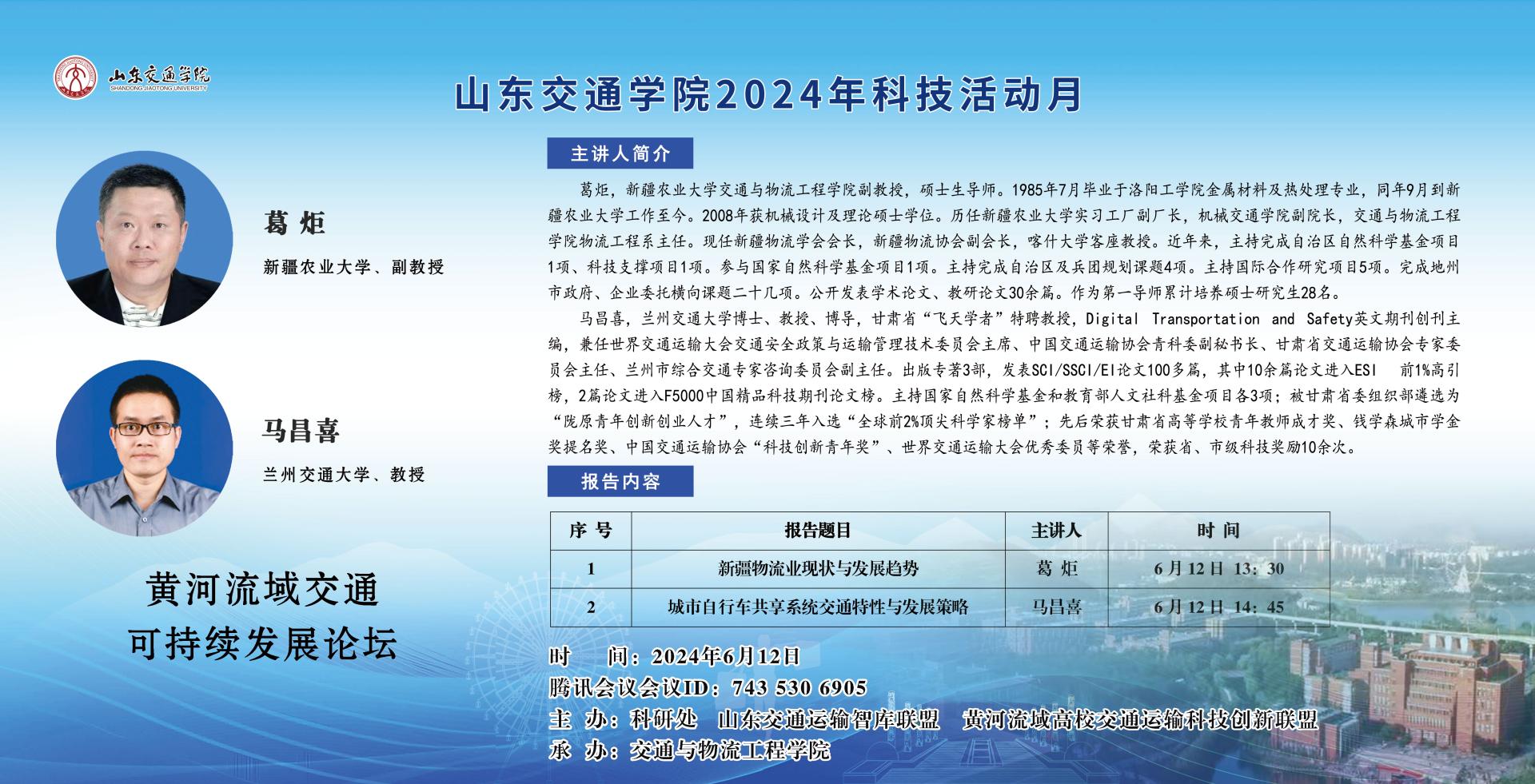 【2024年科技活动月】系列学术报告(六):黄河流域交通可持续发展论坛(一)