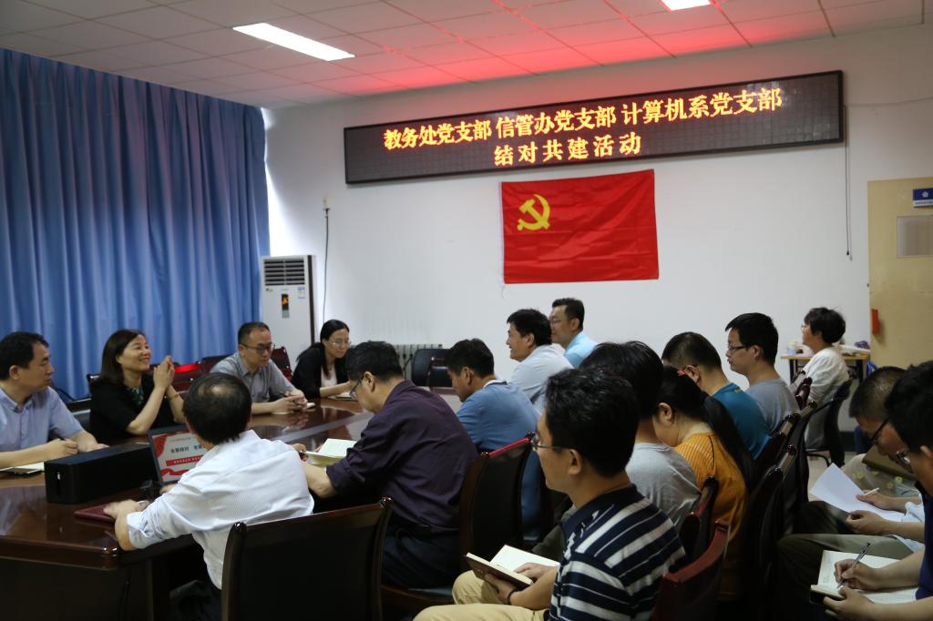 为切实提升基层党建工作水平、充分发挥党支部的战斗堡垒作用、全面建设建成过硬党支部,近日,教务处党支部、信管办党支部、信息科学与电气工程学院计算机系党支部在长清校区开展党支部“全面结对 全面过硬”结对共建活动,三个党支部全体党员参加了此次活动。