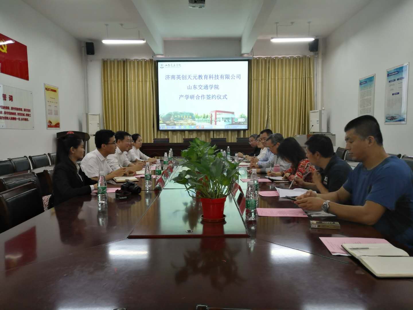汽车工程学院院长于明进从办学条件、办学现状等方面介绍了学院的发展状况、专业设置、办学特色以及服务我省新旧动能转换背景下的人才培养改革思路,希望双方能够加强沟通和交流,推动校企产学研的深度融合。济南英创天元教育科技有限公司总经理陈键介绍了公司基本情况,并希望以此次合作为契机,在促进科技成果转化、新能源汽车实验室建设及柴油高压共轨实验室建设等方面开展广泛合作,努力实现互惠互利、合作共赢。