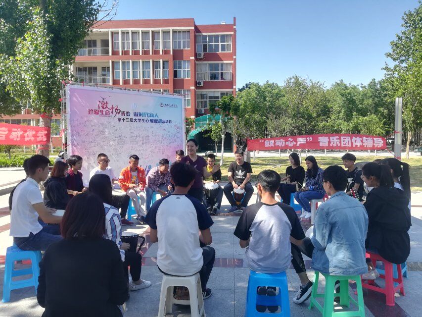 启动仪式后,“海棠花开”女生心理健康工作室负责老师李欣带领同学们进行了室外鼓圈音乐团体辅导,进一步调动了同学们的主动性与积极性,同学们沉浸在音乐的海洋中,心随鼓动,敲响了前进的号角。