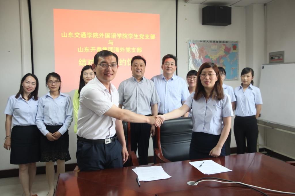 为促进高校与企业基层党组织互学互促、互帮互进,全面提升基层党建工作水平,5月28日上午,外国语学院学生党支部与山东开泰集团海外党支部举行结对共建签约仪式。外国语学院分党委书记马昭、山东开泰集团尹建国经理及双方党员代表参加会议。