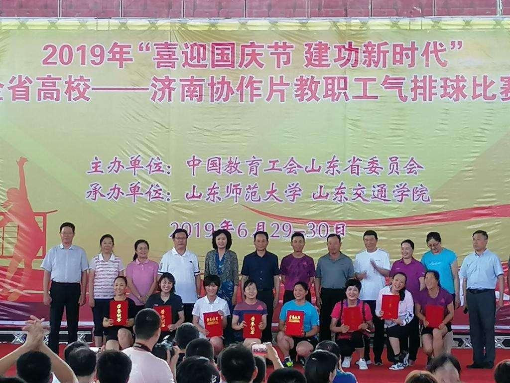 6月29日至30日,由中国教育工会山东省委员会主办,LT.COM乐投和山东师范大学共同承办的2019年“喜迎国庆节 建功新时代”全省高校——济南协作片教职工气排球比赛在我校长清校区体育馆举行。来自全省20所高校,32支代表队,300余名运动员参加了此次比赛。中国教育工会山东省委员会副主席杨慧、山东师范大学工会主席陶务端出席了开幕式并致辞。开幕式由我校工会主席李祥贵主持。