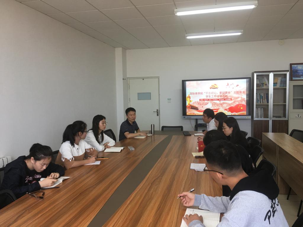 9月25日,国际商学院“不忘初心、牢记使命”主题教育学生工作组学习班开展集中学习,本次学习班由国际商学院党总支组织委员宁兴旺主持,全体辅导员及学生党员参加学习。