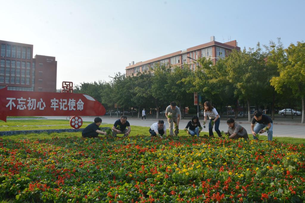集体学习结束后,宣传统战党支部全体党员参加了志愿服务活动,用绿植摆出庆祝中华人民共和国成立70周年活动标识。