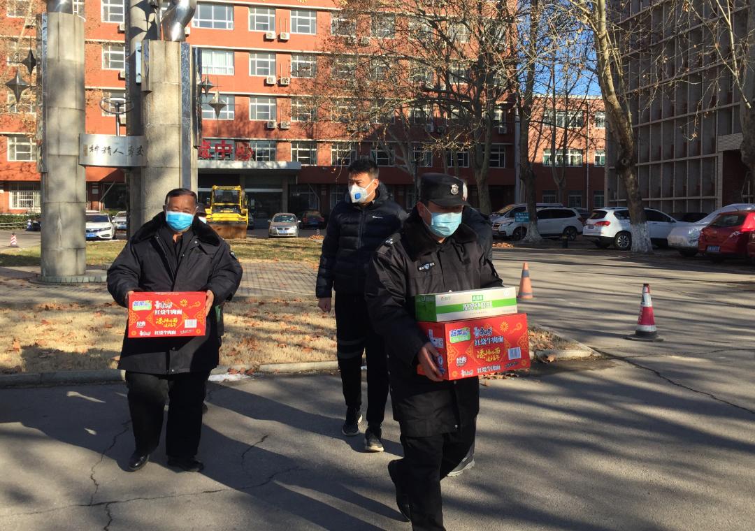 在自查疫情防控一线工作的同时,无影山校区综合管理办公室为防控一线工作人员送去方便面、火腿肠等物资,表达学校对他们的问候和关怀。