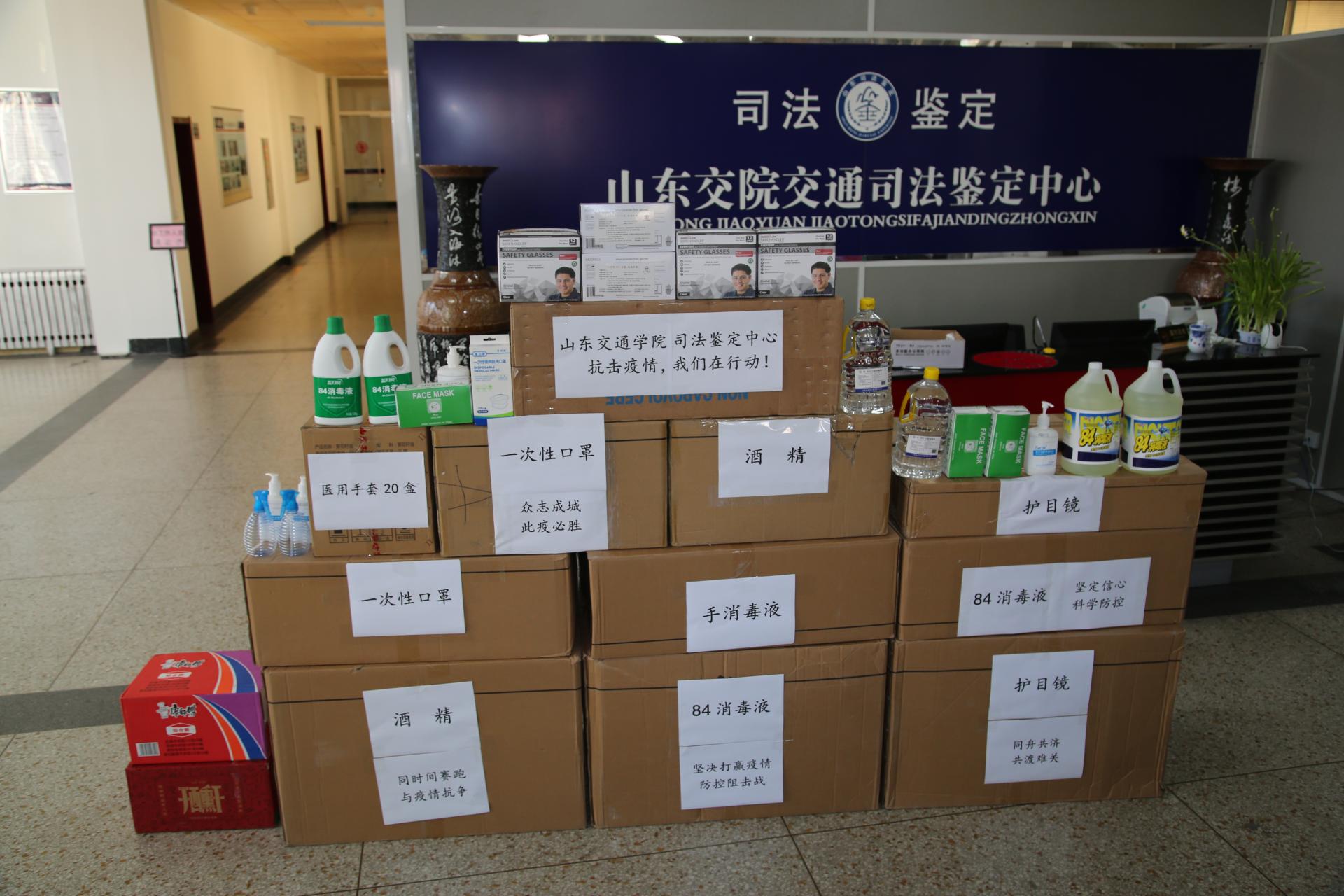 近日,司法鉴定中心通过各种途径采购2000只医用口罩、1500个护目镜、10箱酒精和消毒液,捐赠给奋战在疫情防控一线的聊城、日照、临沂、威海、淄博、枣庄等地市交警,并向学校和济南市司法局疫情防控一线工作人员捐赠了部分物资,以实际行动支援疫情防控工作。