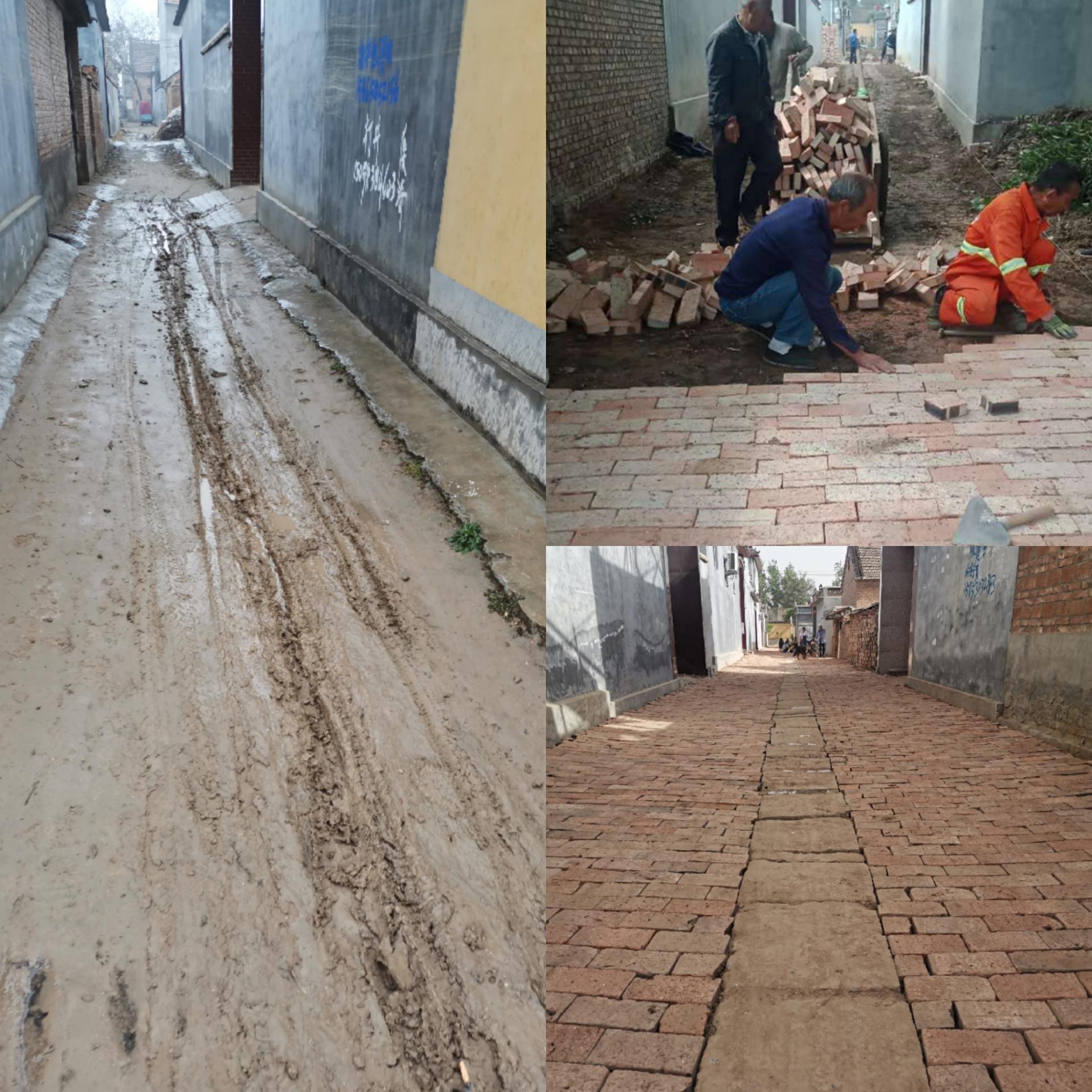 在我校第一书记帮包村的街头小巷里,村民们分工协作,紧张施工,运输、抹平、压实、打磨、铺设,一道道工序衔接紧密,原本脏乱差的土泥路正一点点变得宽阔平整,一条条坑洼不平的土路变成了宽阔平整的公路。