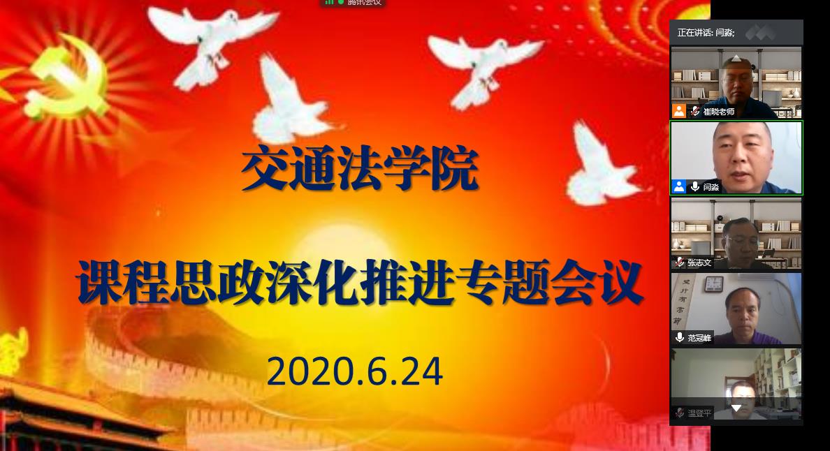 6月24日,交通法学院举行全院教师视频会议,专题学习学校课程思政深化推进会会议精神,落实学校党委思政进课堂有关工作部署。